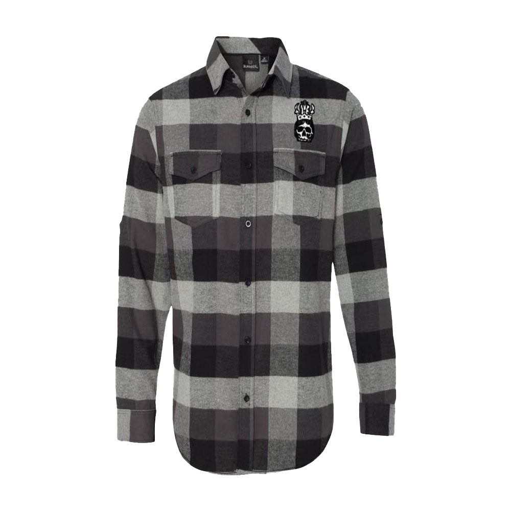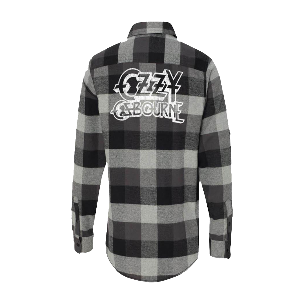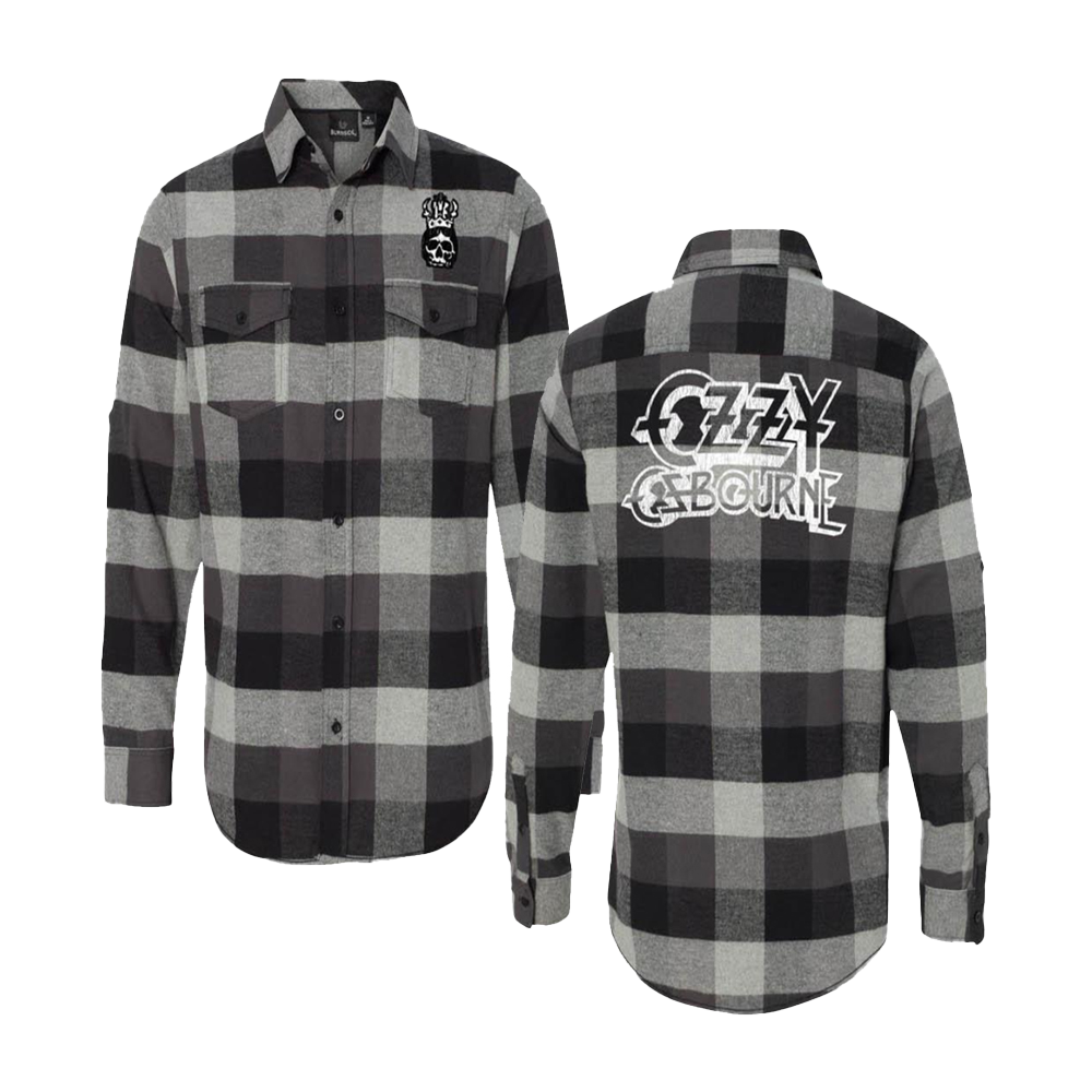 The Ozzy Osbourne 'Buffalo Plaid Shirt' features skull artwork on the chest complete with the Ozzy Osbourne logo on the back.