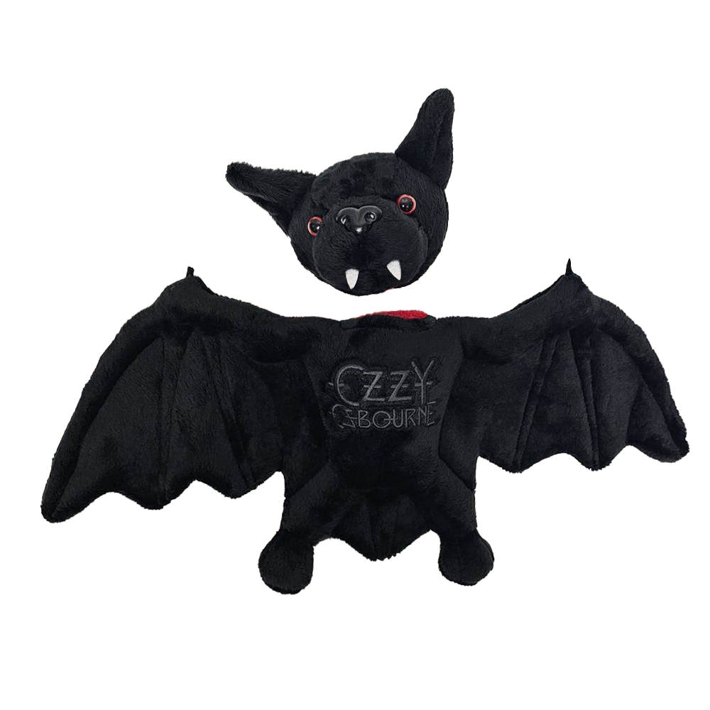 The Ozzy Osbourne Bat Plush is a web exclusive. This new Black-on-Black edition brings the legendary moment in rock history to life with this soft toy Plush Bat, featuring the Ozzy Osbourne logo and a Velcro detachable head.